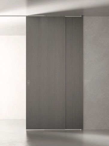 The external wall sliding door has an external guide visible or recessed inside a false ceiling. Perfect for dividing large spaces.