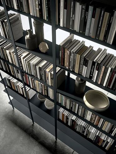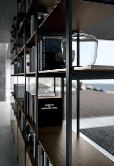 Comprising U-shaped uprights produced by folding system, and horizontal shelves assembled and fitted without hardware, it comes in any of the finishes in our sample chart.
